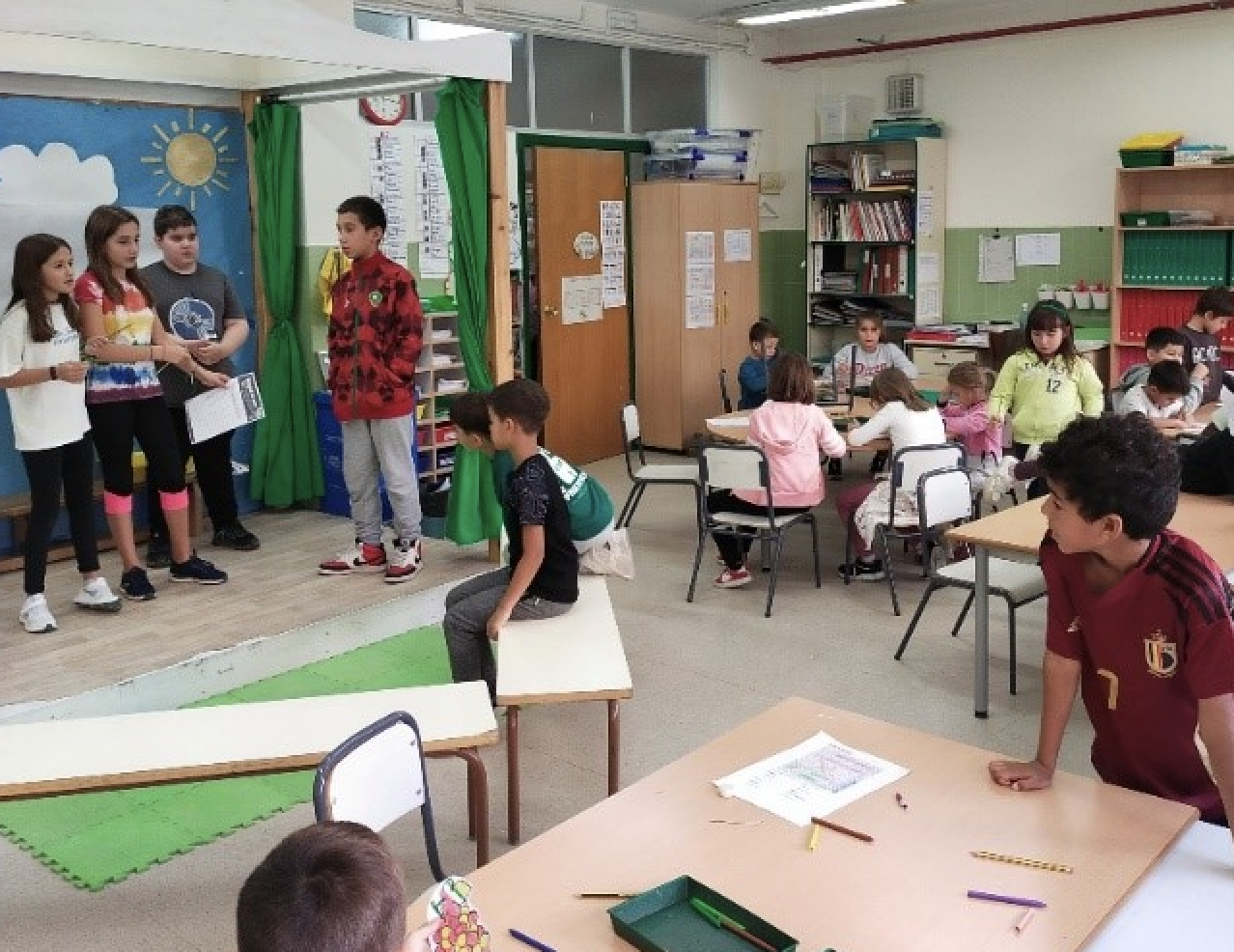 Lengua (1.º ciclo) Exposiciones orales en zona de teatro; participación de alumnado mayor como ponente.